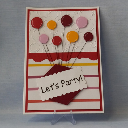 This bright and colorful card features balloons and the words "Let's Party" in big, bold print, creating instant excitement. It has plenty of room inside for your personal invitation to an upcoming event or for a note to thank a guest for celebrating with you on their special day.