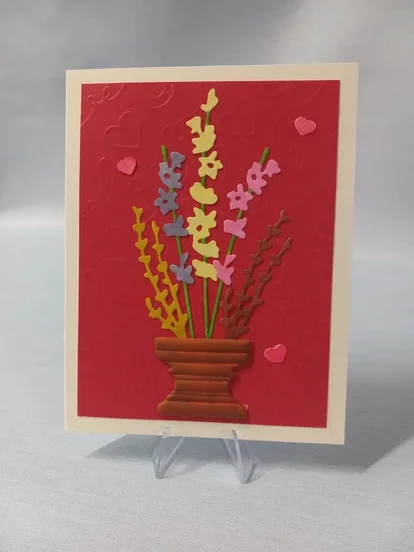 These cards will brighten your recipient's day when they see the warmth they create. The glowing colors and mixed media say "wow," and the big, sparkly "hello" tells them they have been on your mind. The blank inside is a versatile canvas for creating your own words.