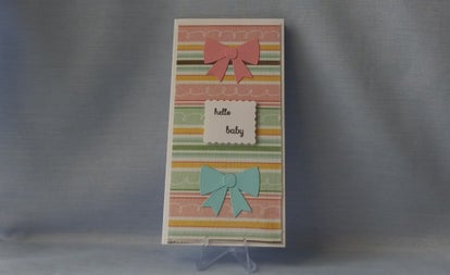 This simple and sweet card welcomes a baby into the world. It comes in pastel colors that are suitable for babies. The design is traditional, featuring bows in a charming way. You can address the card to the parents, the entire family, or the baby.
