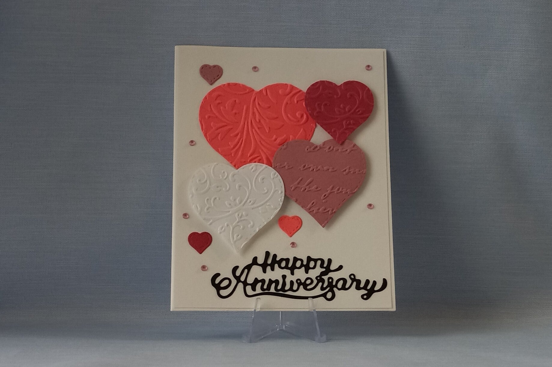 EXTRA - This card has embossed hearts all joined as one, just as a happy couple are joined in a precious beautiful union. The hearts are colorful, vibrant and full of joy. Give this card to the couple that matches those qualities and they will be forever grateful.