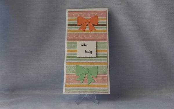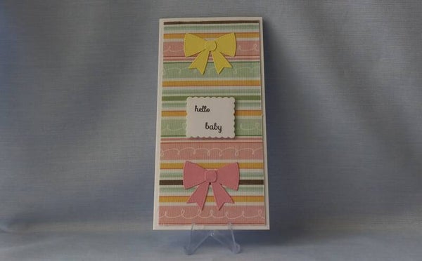 Companies of Supplies Used: Fabric Paper by Dear Lizzy + American Crafts (background), Beautiful Bows by Pretty Pink Posh, and Hello Baby Sentiment by Sweet 'n Sassy