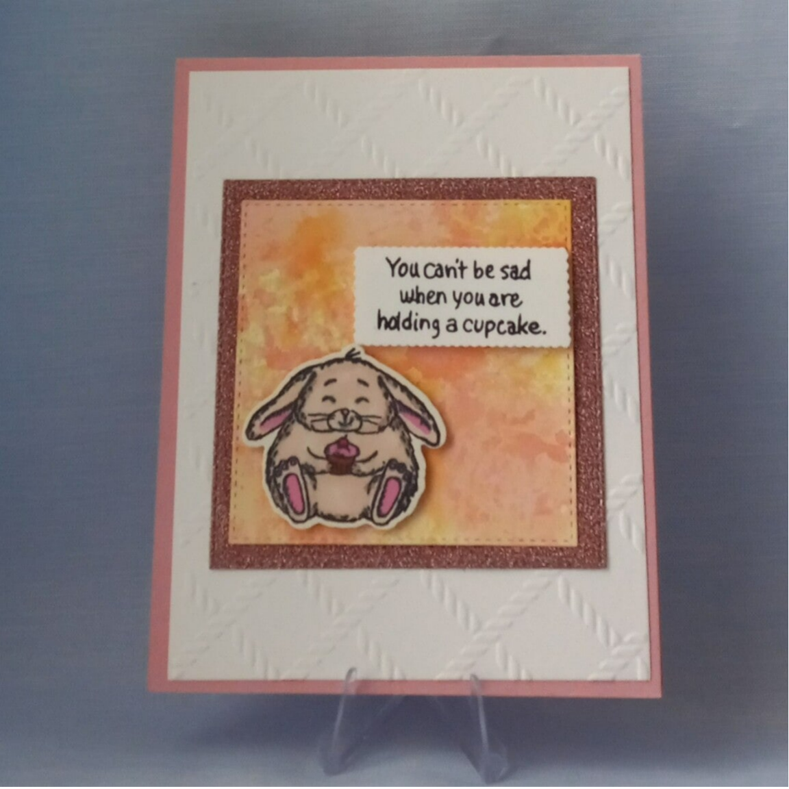 Bunnies are culturally significant figures that represent several uplifting qualities suitable for encouragement. They represent a 'soft' approach to life, encouraging the recipient to be kind to themselves during difficult times, while cupcakes represent personal victories, milestones, or the act of treating oneself for making progress.