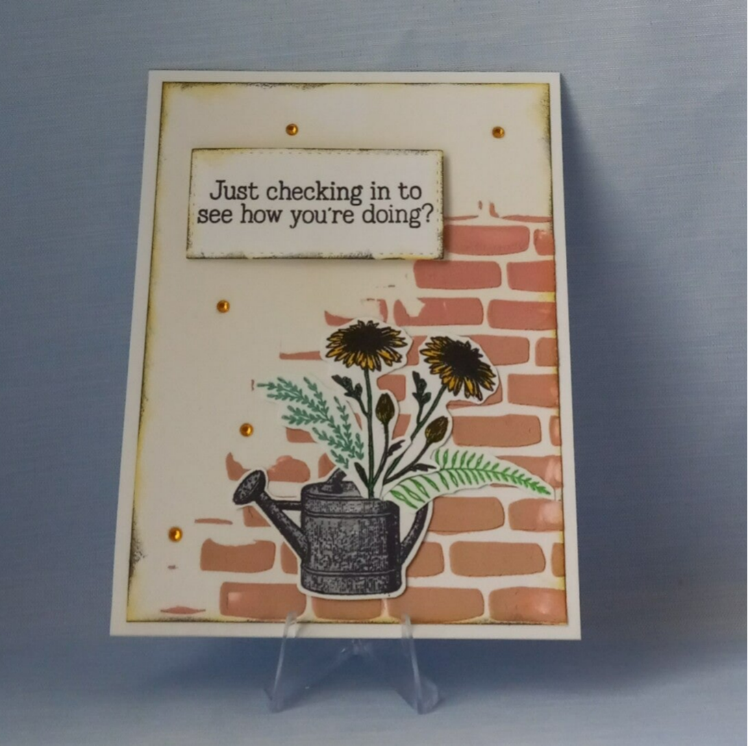 Companies of Supplies Used: Tiny Wildflowers Stamps by BoBunny (Flowers) and Garden Stamps by Crafter's Square (Watering Can) and Get well Stamps by Crafter's Square (Sentiments